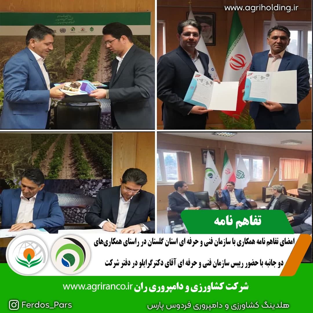 امضای تفاهم نامه همکاری با سازمان فنی و حرفه ای استان گلستان در راستای همکاریهای دو جانبه با حضور دکتر گرایلو ( رییس سازمان فنی و حرفه ای گلستان ) در دفتر شرکت.
