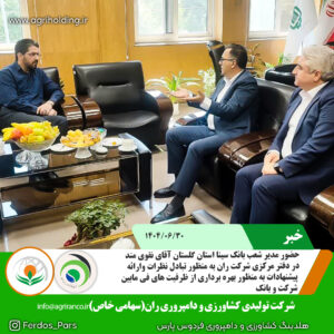 حضور مدیر شعب بانک سینا استان گلستان آقای نقوی مند در دفتر مرکزی شرکت ران به منظور تبادل نظرات وارائه پیشنهادات به منظور بهره برداری از ظرفیت های فی مابین شرکت و بانکhttps://agriranco.ir #شرکت_کشاورزی_و_دامپروری_ران