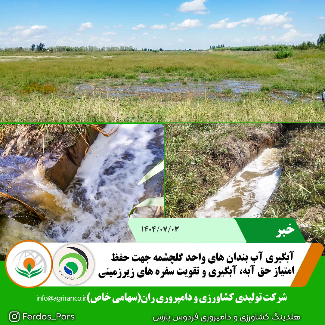 آبگیری آب بندان های واحد گلچشمه جهت حفظ امتیاز حق آبه، آبگیری و تقویت سفره های زیرزمینیhttps://agriranco.ir #شرکت_کشاورزی_و_دامپروری_ران
