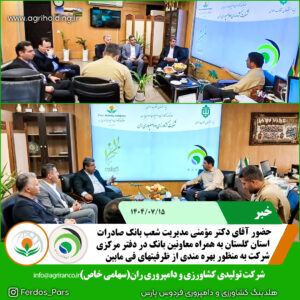 حضور آقای دکتر مؤمنی مدیریت شعب بانک صادرات استان گلستان به همراه معاونین بانک در دفتر مرکزی شرکت به منظور بهره مندی از ظرفیتهای فی مابینhttps://agriranco.ir #شرکت_کشاورزی_و_دامپروری_ران