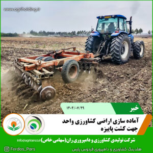 آغاز آماده سازی اراضی کشاورزی واحد گلچشمه برای کشت پاییزه. این واحد جهت افزایش بهره وری اقتصادی با هدف از مزرعه تا سفره علاوه بر کشت گندم، کشت گوجه فرنگی برای واحد صنعتی خود را نیز در دستور کار دارد. https://agriranco.ir #شرکت_کشاورزی_و_دامپروری_ران