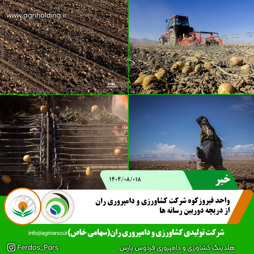 گزارش تصویری از برداشت سیب‌زمینی واحد فیروزکوه شرکت کشاورزی و دامپروری ران در خبرگزاری های کشور؛ ✅خبرگزاری فارس: زمین هایی که امید می رویانند https://farsnews.ir/hadihirbodvash/1761562650575655192 عکس: هادی هیربدوش ✅خبرگزاری تسنیم: اشتغالزایی در مزارع سیب زمینی فیروزکوه https://www.tasnimnews.com/fa/media/1404/08/06/3433096 عکس: امیر بدرعظیمی ✅خبرگزاری دانشجو: برداشت سیب زمینی از مزارع فیروزکوه https://snn.ir/005YNY عکس: مجید حجتی ✅خبرگزاری میزان: برداشت سیب زمینی از مزارع فیروزکوه https://www.mizanonline.ir/00KPMJ عکس: بهاره قادری ✅آژانس خبری نور فوتو: اشتغالزایی در مزارع سیب زمینی فیروزکوه http://Noorphoto.ir/n/78720 عکس: حیدر رضایی ✅خبرگزاری شهرآرا: برداشت سیب زمینی از مزارع کشاورزی فیروزکوه https://shahraranews.ir/fa/news/369507 عکس: فاطمه جاهدی https://agriranco.ir #شرکت_کشاورزی_و_دامپروری_ران #آبان۱۴۰۴ #فیروزکوه