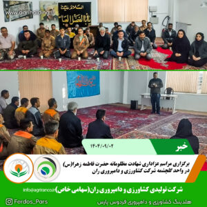 مراسم عزاداری شهادت مظلومانه حضرت فاطمه زهرا(س) در واحد گلچشمه شرکت کشاورزی و دامپروری ران برگزار شد. https://agriranco.ir #شرکت_کشاورزی_و_دامپروری_ران