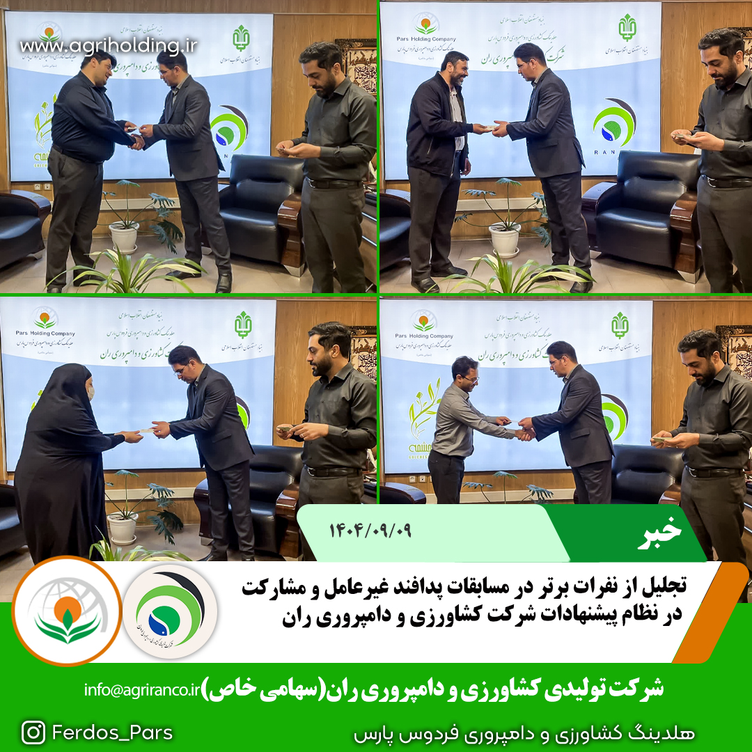 در دفتر مرکزی از نفرات برتر در مسابقات پدافند غیرعامل و افرادی که در نظام پیشنهادات مشارکت داشتند تجلیل شد. https://agriranco.ir #شرکت_کشاورزی_و_دامپروری_ران