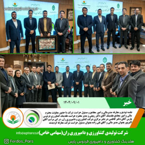 جلسه تودیع و معارفه مدیرمالی و امور مجامع و مسئول حراست شرکت با حضور معاونت محترم مالی و امور مجامع هلدینگ آقای دکتر ربیعی و مدیر محترم حراست هلدینگ کشاورزی فردوس پارس آقای دکتر کاظمی در دفتر مرکزی شرکت کشاورزی و دامپروری ران برگزار شد. در این مراسم آقای اکبرپور بعنوان مدیر مالی و آقای تقی زاده بعنوان مسئول حراست شرکت معارفه گردیدند. https://agriranco.ir #شرکت_کشاورزی_و_دامپروری_ران