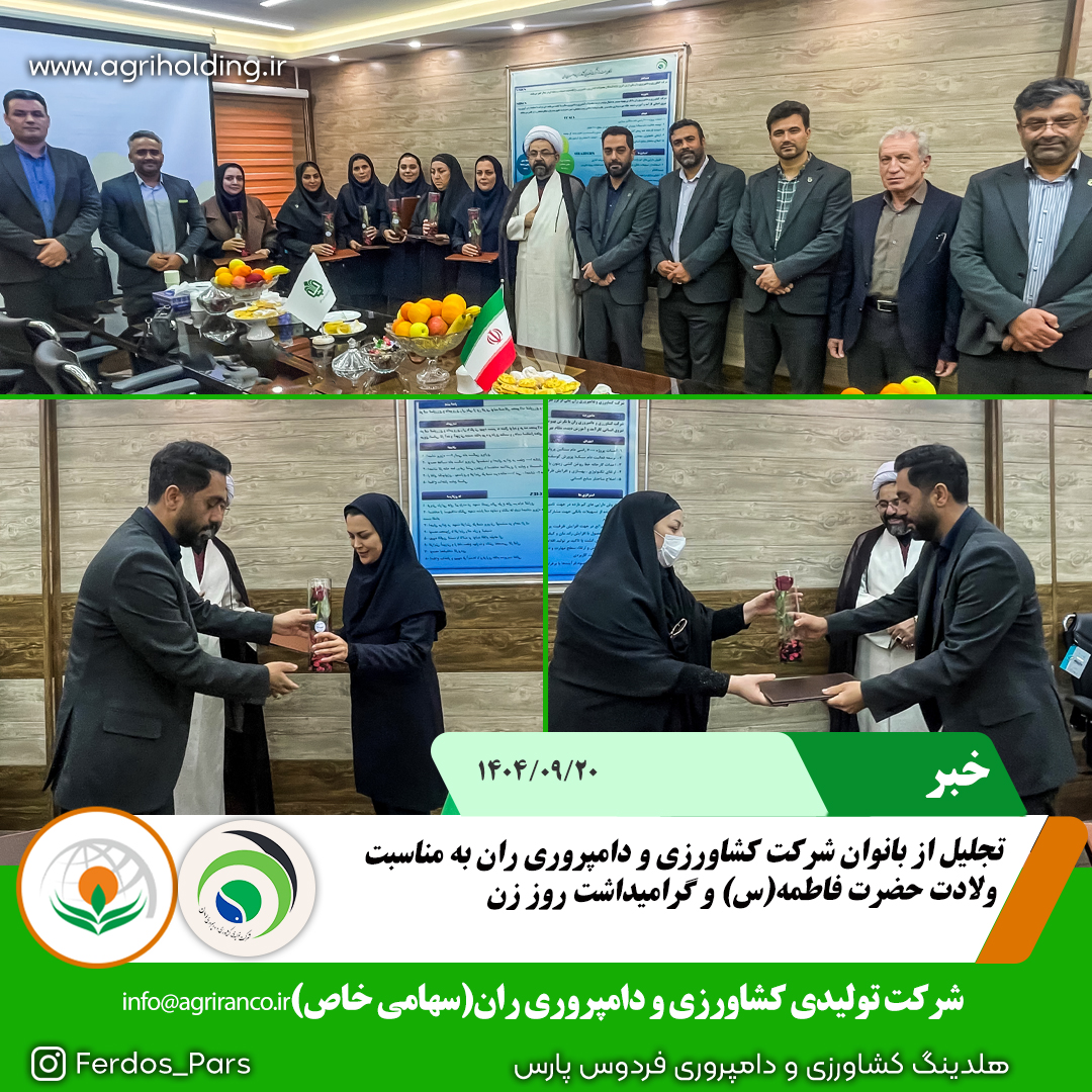 به مناسبت ولادت با سعادت حضرت فاطمه زهرا(س) و گرامیداشت روز زن، از بانوان محترم شرکت تقدیر و تشکر به عمل آمد. https://agriranco.ir #شرکت_کشاورزی_و_دامپروری_ران