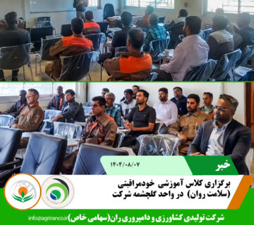 برگزاری کلاس آموزشی خودمراقبتی(سلامت روان) در واحد گلچشمه شرکتAdmin۱۲ آبان ۱۴۰۴برگزاری کلاس آموزشی خودمراقبتی(سلامت روان) در واحد گلچشمه شرکت. آموزش خودمراقبتی (سلامت روان) با هدف آگاهی دادن به نیروها در ... ادامه مطلب