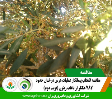آگهی مناقصه انتخاب پیمانکار عملیات هرس درختان حدود ۷۸۷ هکتار از باغات زیتون (نوبت دوم)Admin۱۹ دی ۱۴۰۳آگهی مناقصه انتخاب پیمانکار عملیات هرس درختان حدود ۷۸۷ هکتار از باغات زیتون (نوبت دوم) “ شرکت کشاورزی و دامپروری ... ادامه مطلب