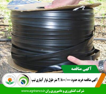 آگهی مناقصه خرید حدود ۲/۸۰۰/۰۰۰ متر طول نوار آبیاری تیپAdmin۵ اسفند ۱۴۰۳شرکت کشـاورزی و دامپـروری ران درنظــردارد، حدود ۲/۸۰۰/۰۰۰ متر طول انواع نوار آبیاری تیپ (پلاک دار و درز دار) و ... ادامه مطلب