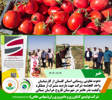 دعوت تعاونی روستایی استان گلستان از کارشناسان واحد گلچشمه شرکت جهت بازدید مشترک از عملکرد و کیفیت بذر هاینز در شهرستان فاروج خراسان شمالی
