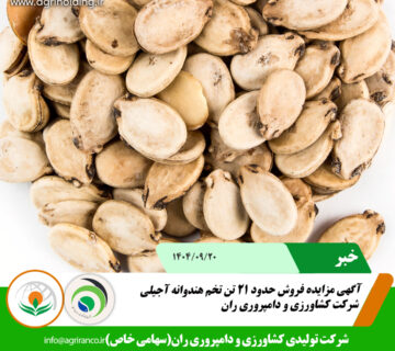 آگهی مزایده فروش حدود ۲۱ تن تخم هندوانه آجیلیAdmin۱۹ آذر ۱۴۰۴شرکت کشاورزی و دامپروری ران در نظر دارد حدود ۲۱ تن تخم هندوانه آجیلی تولیدی ۱۴۰۴ مزارع خود را در ... ادامه مطلب